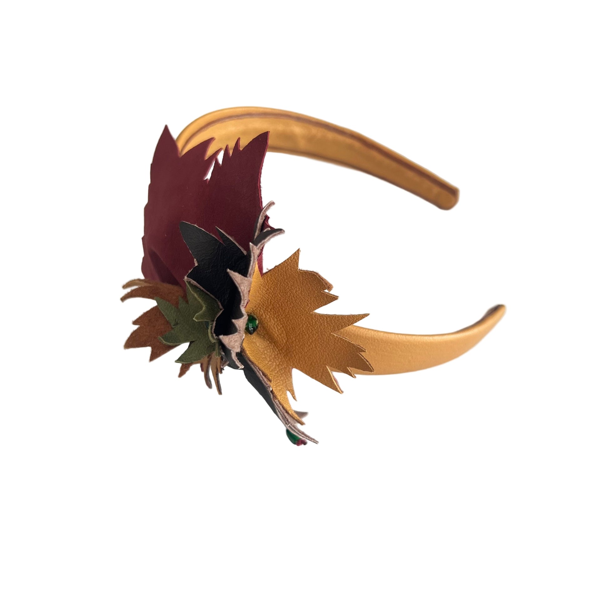 Embrace the beauty of autumn with this stunning handcrafted leather maple leaf headband, a true statement piece that celebrates the artistry of handmade accessories.